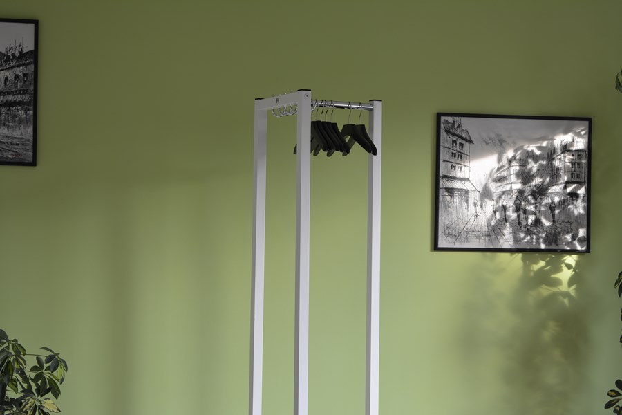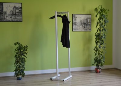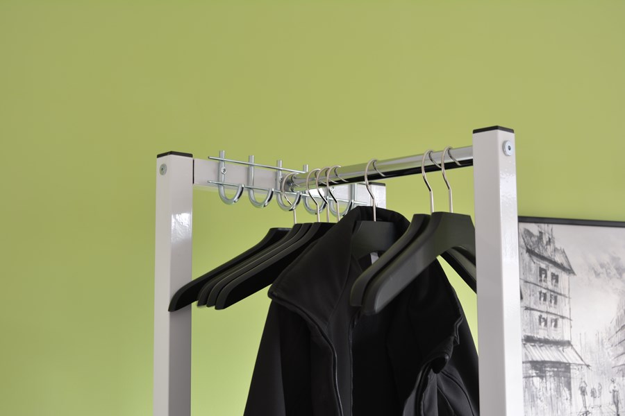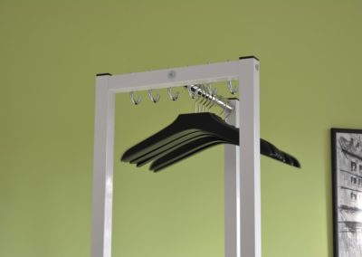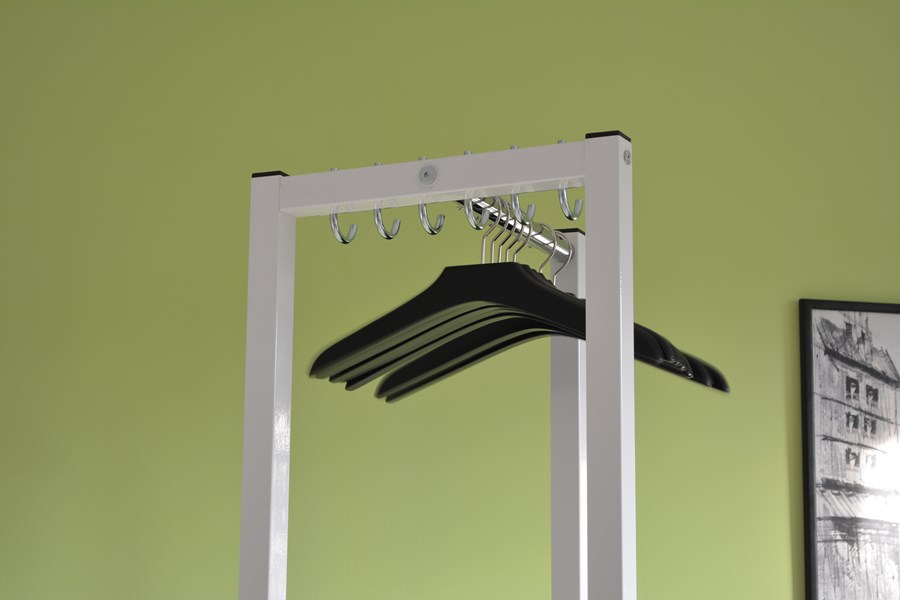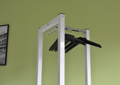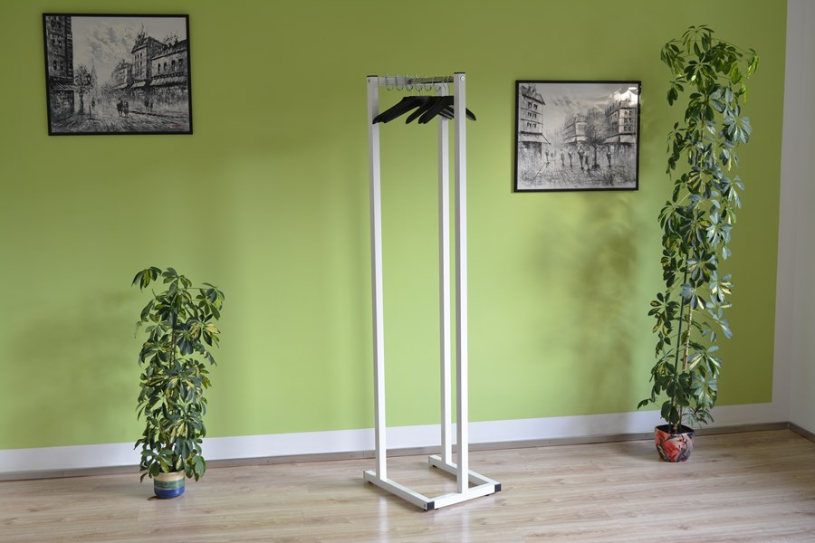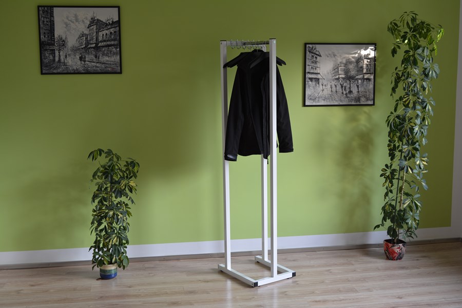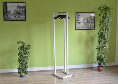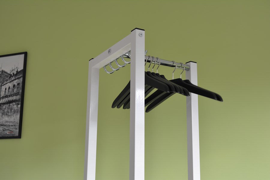 Wieszak zbudowany z profili metalowych malowanych proszkowo, przeznaczony