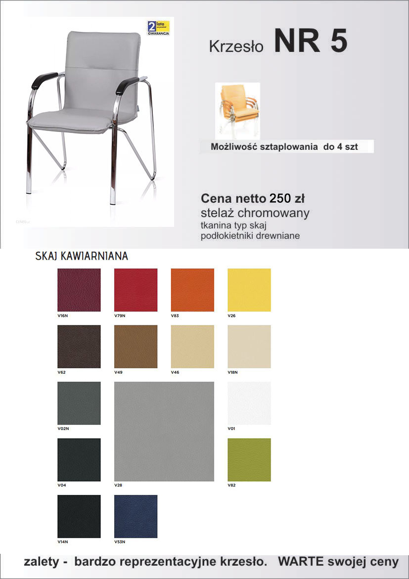 Konferencyjne nr 5 Krzesło konferencyjne sztaplowane. Dostępne wersje krzesła:– z podłokietnikiem drewnianym,– z podłokietnikiem tapicerowanym. Dostępne wybarwienia drewna:– orzech,– buk. cennik