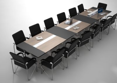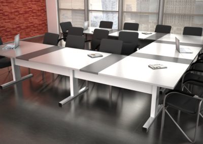 Bardzo nowoczesny, obszerny i oszczędny w formie stół Boston to uniwersalny konferencyjny wybór do niewielkiej sali ale także składający się z kilku modułów ustawionych w literę L, literę U bądź w kwadrat zaspokoi potrzeby nawet kilkudziesięciu użytkowników w jednym momencie. Prosta linia nóg połączona ze skrojonymi z precyzją blatami ubranymi w odpowiednie kolory będą idealnym wyposażeniem każdej sali konferencyjnej.