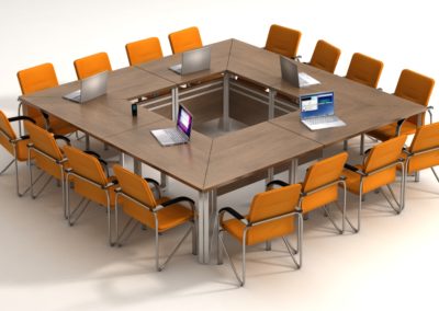 Idąc z duchem czasu po kilku latach powolnego rozwoju działu stołów konferencyjnych powstał pierwszy z tych najnowocześniejszych stół Twist. Odpowiadając na potrzeby coraz to większych korporacji zaczęliśmy tworzyć meble konferencyjne, które w dowolny sposób można konfigurować tworząc kwadraty, prostokąty, koła, elipsy czy stoły w kształcie litery U czy L. Szereg możliwości i wspaniała nowoczesna charakterystyka stołu Twist sprosta wygórowanym wymaganiom jakościowym i pomieści dowolnie dużą ilość użytkowników.