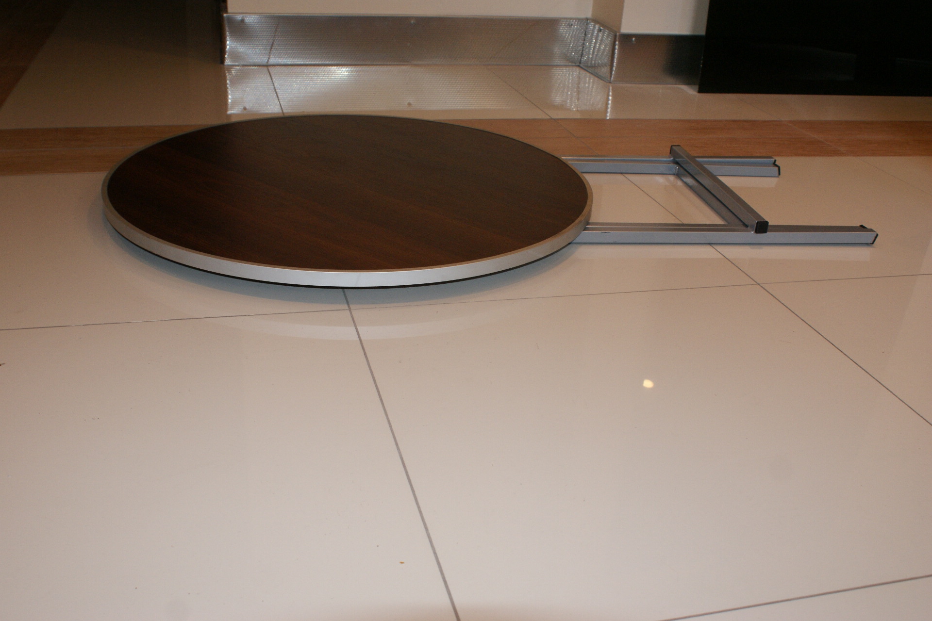 Obrzeże stołu wzmocnione ceownikiem aluminiowym.