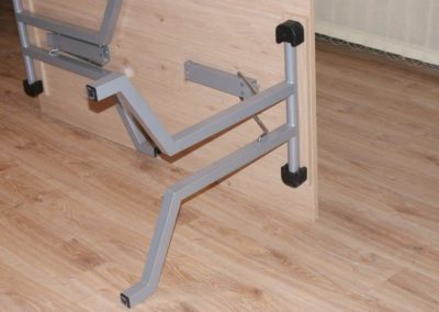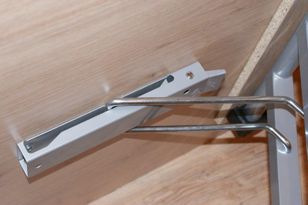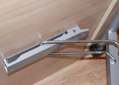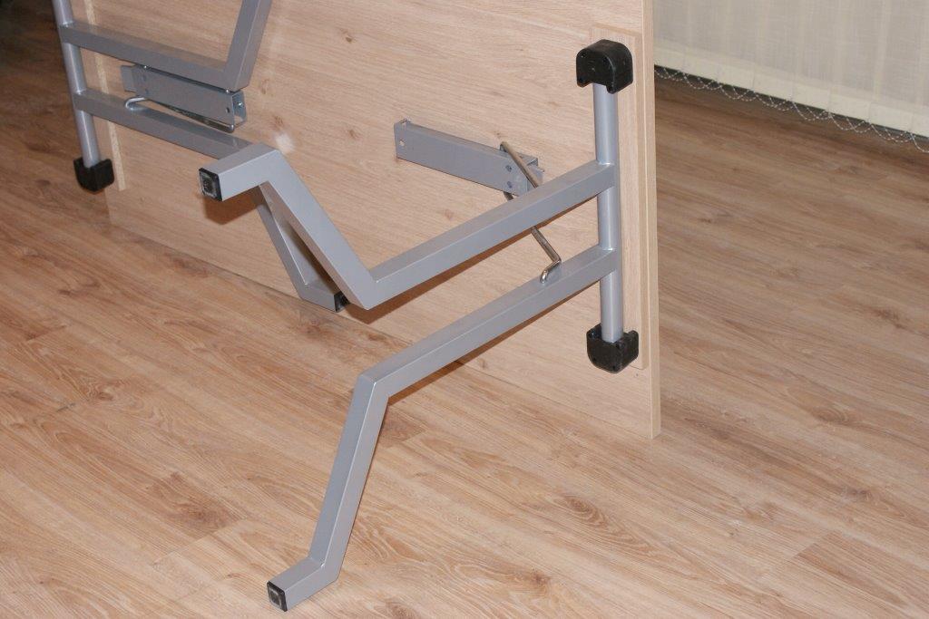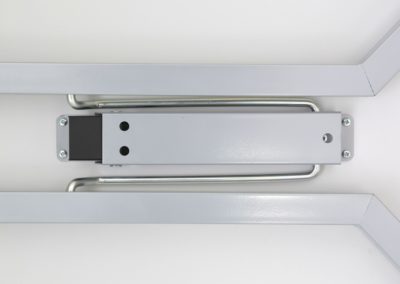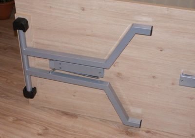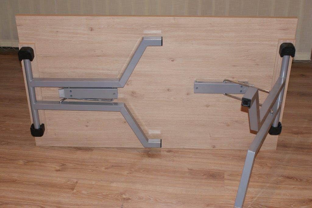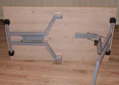 Blat wzmocniony od spodu metalowymi profilami przeciwdziałającemu uginaniu się. Stoły sztapluje się dzięki czemu można je ułożyć na wózkach transportowych i w ten sposób je przechowywać lub transportować.