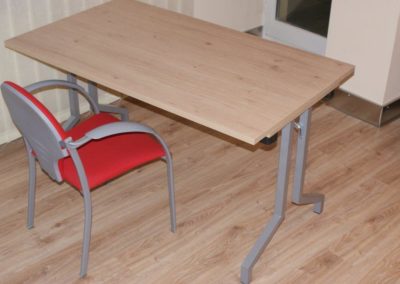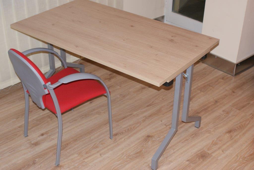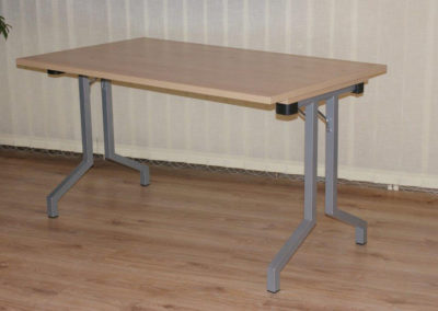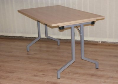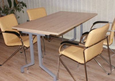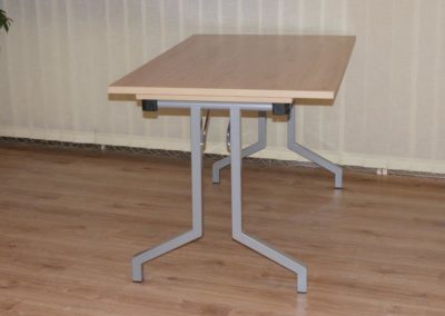Stoły konferencyjne, składane TYP Y – blaty o grubości 36 mm (blat pełny 18 mm + rama pogrubiająca 18 mm) wykonane z płyty melaminowanej w bogatej palecie wybarwień ustawionej na metalowym, solidnym stelażu składanym malowanym na czarno lub metalik (inne kolory na zamówienie).